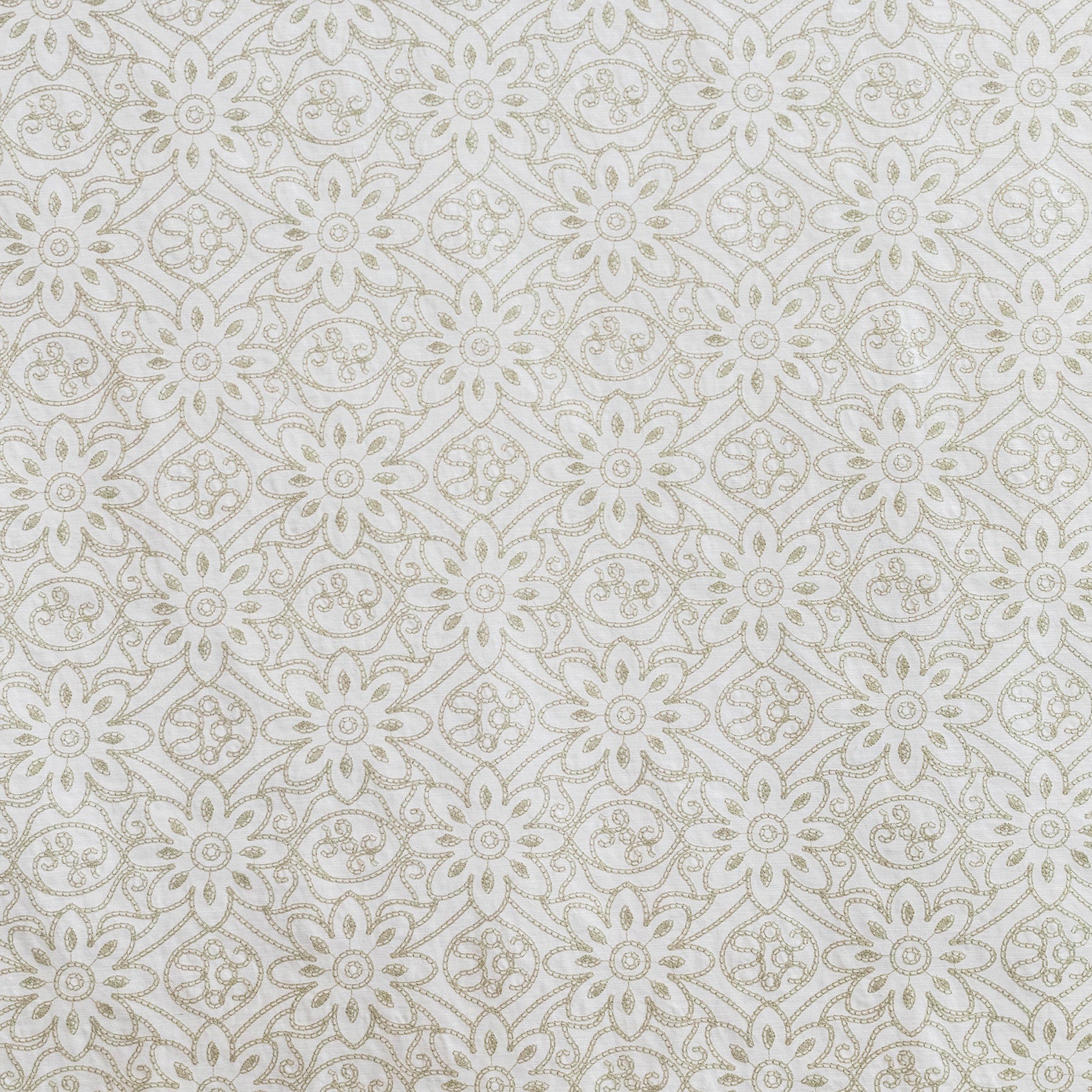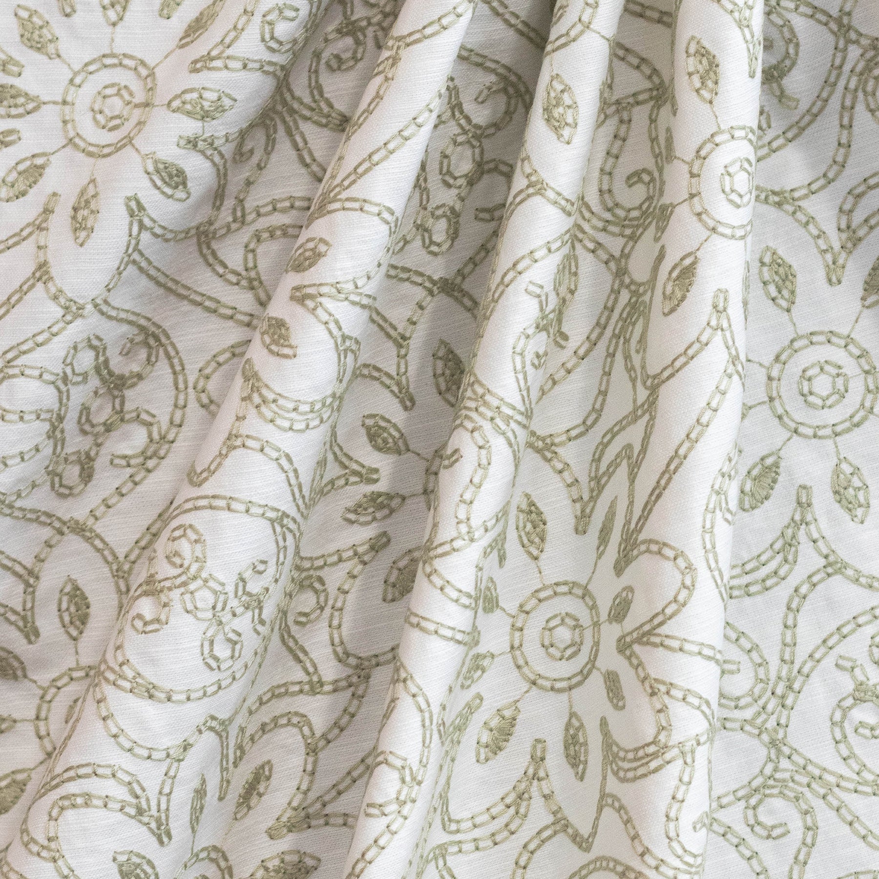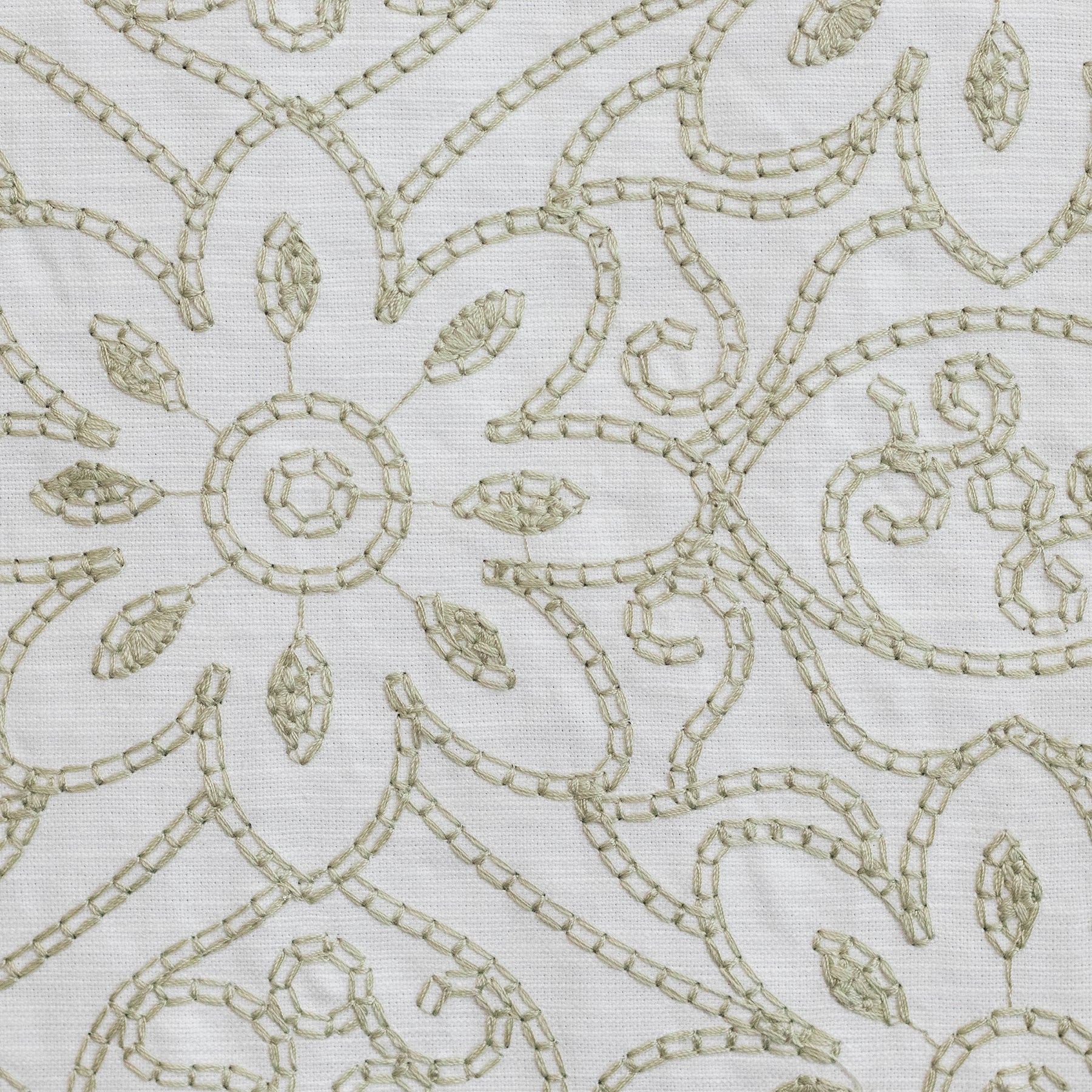 Darned Daisies Sage Embroidered Fabric