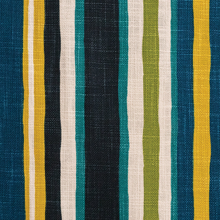 This summery stripe consists of fun and spritely blues, green/yellow and off-white.